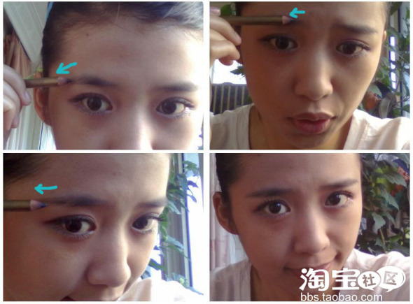 小包是一字眉,重点画眉尾和眉头,和画眼线时一样,呈八字形画。