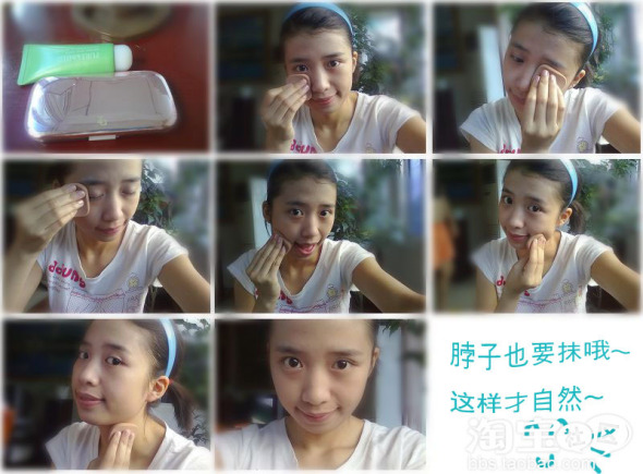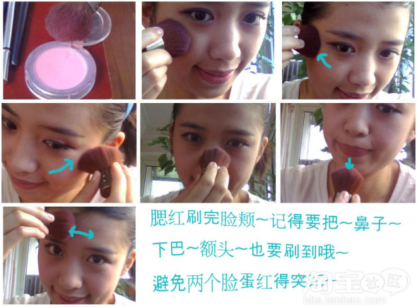 开始上粉啦,要将粉底彻底涂匀,下颔和颈部四周必须涂得清淡自然。