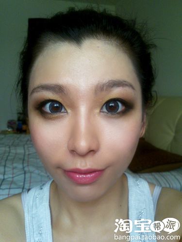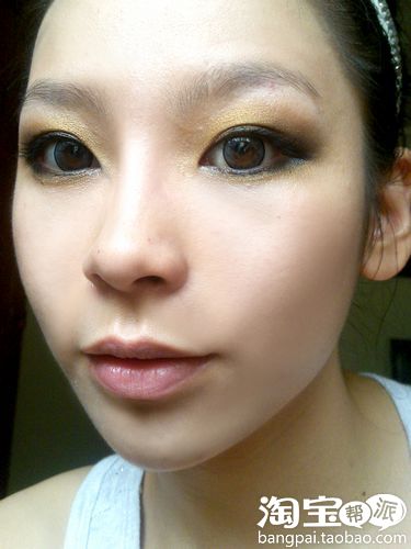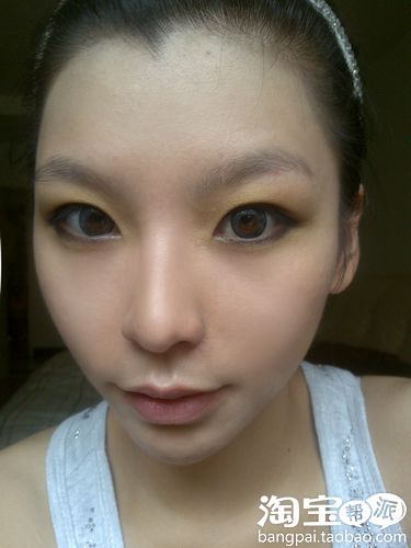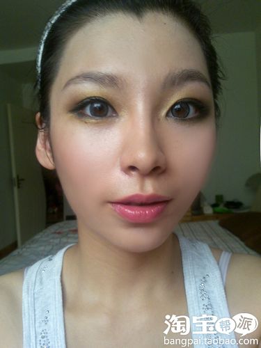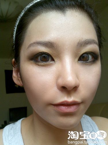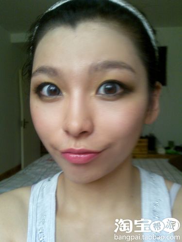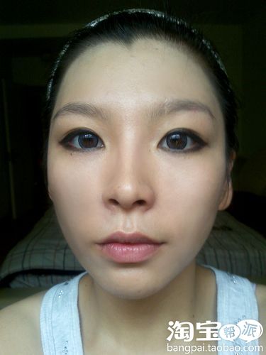 小涔选择的是M.A.C的眼线笔,感觉不是太好,有点晕,也许是我油性皮肤的关系,亲有什么好的眼线笔介绍给我啊,先谢啦。我个人认为眼线一定要化到睫毛根部,不然从下往上看会看到白色的边,小涔认为女人应该注重细节。眼线可以化稍粗一些,这样可以从视觉上夸大了眼睛的轮廓,是大眼妆的前提。(忘戴美瞳了,直接发戴上美瞳画好眼线的照片)