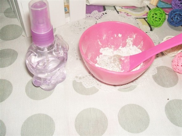 第一步在干净无水的面膜碗里倒入珍珠粉 没有概念的亲可以用计量器