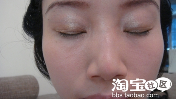 然后用眼影吧,这次用的是白,金,灰三色(这盒眼影超喜欢,很上色。。。)
