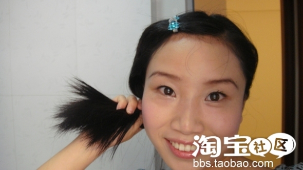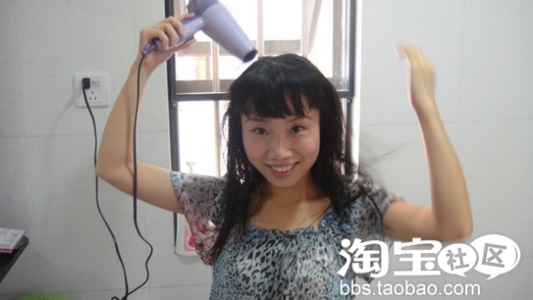 去把头发吹吹干,我有一点小小的流海哦,前两个星期刚剪的,不过感觉自己不是很适合这种发型。。。。