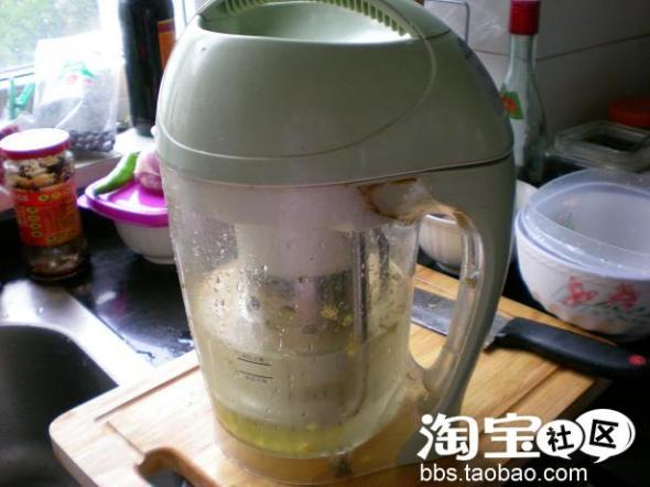 2, 然后把切好的姜丁放到豆浆机里面,水放到最高水位一层,然后就可以插上电源开始打了,豆浆机很方便,而且姜汁打的很细,打完之后他会提醒你关闭电源的,也很节约时间,有mm是用老办法熬姜汤的办法,这个对于很多人来说非常麻烦,时间要几个小时不说,可是大家都是上班族哪有这么多空余时间呢,像我这么空的人不多,哈哈