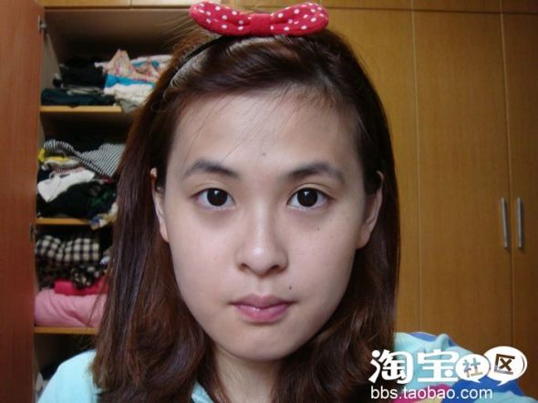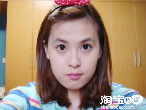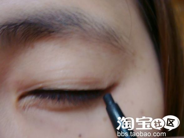 用露华浓眼线笔画一条细细的眼线,眼尾用bb的眼线笔(请忽略我那稀疏的眉毛)