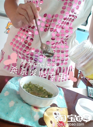 然后加入盐、鸡精、再放上酱油 醋.....小杀妈妈做的这个放了一些生的青辣椒~~大家也可以放辣椒油~~但是考虑到养生就没放辣椒油~~~