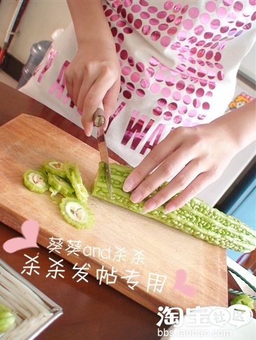 其实很简单~把苦瓜切成片状或者其他什么的都行~~