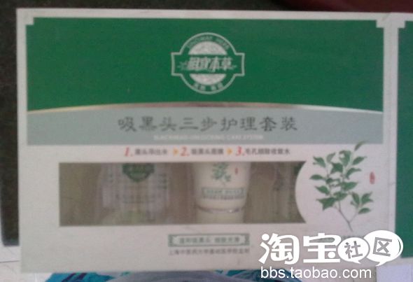 这个是去黑头的面膜。本草相宜的三步护理套装。我觉得这种撕拉的面膜。特别是去黑头的效果都差不多。我喜欢牛尔老师的1元去黑头面膜。一周一次。只用鼻子至少用2个星期。价格又实惠。买完这个我挺后悔的,里面有黑头导出液.面膜和收毛孔的水。35元买的。其实这盒里就只有面膜有实际用处。