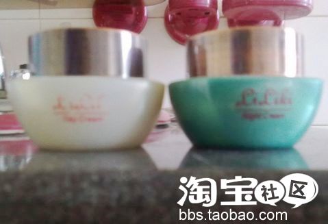 这个是妈妈托人从香港买来的。亮丽牌的、白色是日霜。绿色的是晚霜。日霜是像粉底。涂抹上去有变白。我老爸都用呢。可以遮雀斑和毛孔。晚霜像黄油。哈哈。不过还不错。晚霜用的更快些。价格不贵。一对35元就买的到。