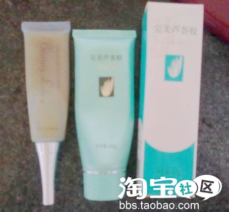 这两个是祛痘胶。左边是姨从香港带回来的。香港的牌子很多都不晓得。右边完美芦荟胶30g。很便宜。5元就买的到。但假货很多。具有消炎、祛痘的作用。凉凉的很舒服。