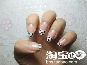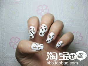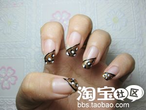 黑色指甲油,画豹纹的纹路,圈圈,两道,随你画