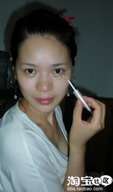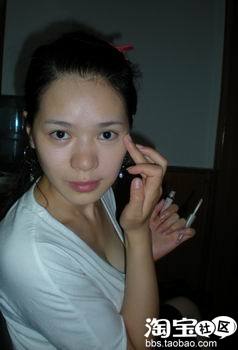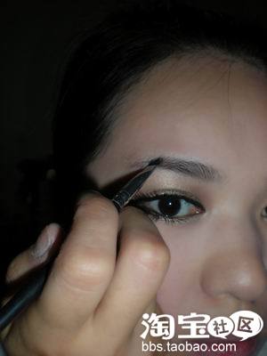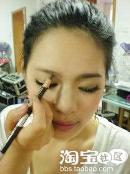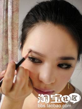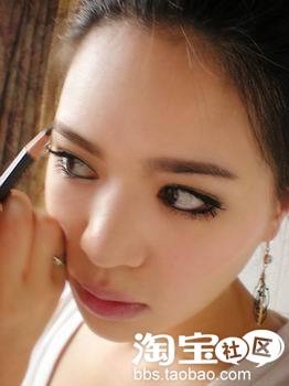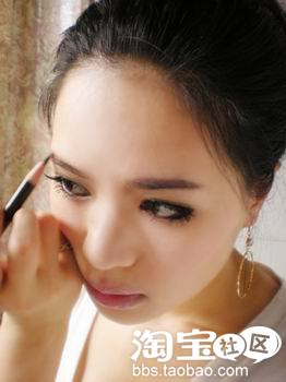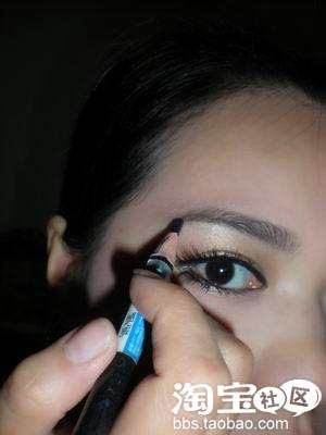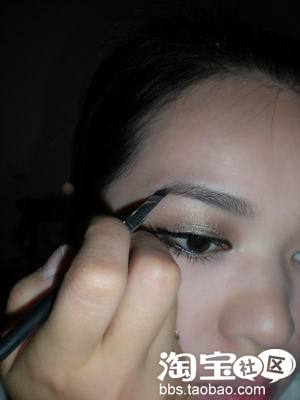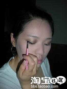 具体的位置在双眼皮褶皱外面一点点 闭着眼睛涂 看睁开眼睛的效果 然后画眼线咯 可以从中间的地方起笔 往外面往上挑一点 这样比较有神额