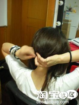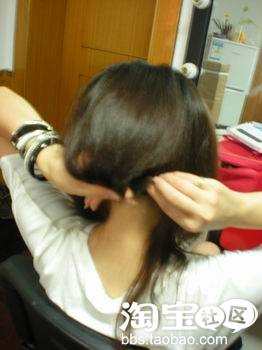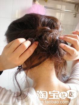 开始尽量打蓬松一点 因为后面夹的时候会扁的 先把后脑的地方的发尾绕在手指上 然后卷进去 再用发夹固定