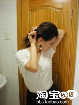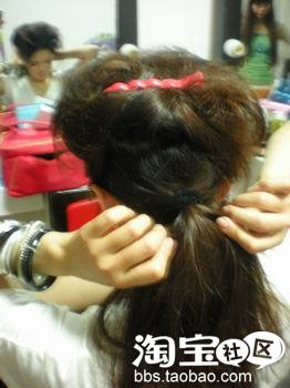 后面剩下的头发 先扎个马尾 然后把马尾倒梳 卷过来固定一下