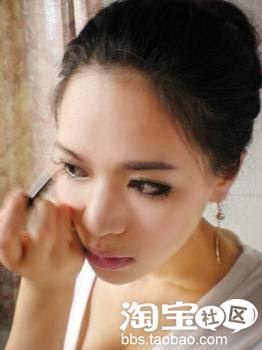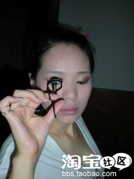 然后再画前面的地方 夹睫毛 分成3段 先夹中间 再夹尖部 最后夹根部 一定要夹翘哦 今天偷懒啦 沾假睫毛哈