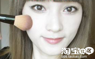 接着就是扫上胭脂,在笑肌肉处从下往上扫,这样有小脸的效果哦!