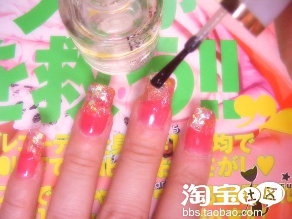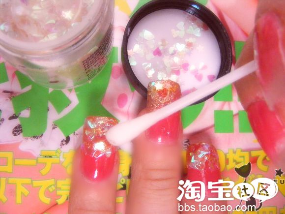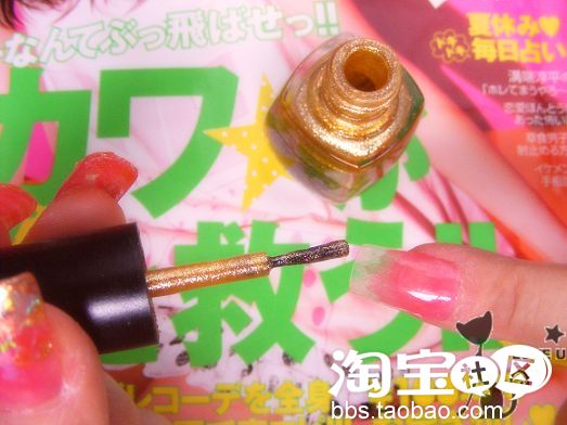 ÔÚ¼×ÓÍδ¸Éʱ °Ñ×¼±¸ºÃµÄ×°ÊÎÉÁƬÓÃÃÞ°ôռȡ·Åµ½½ðÉ«¼×ÓÍλÖÃÉÏ