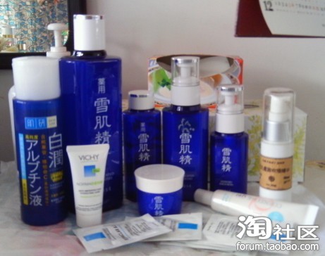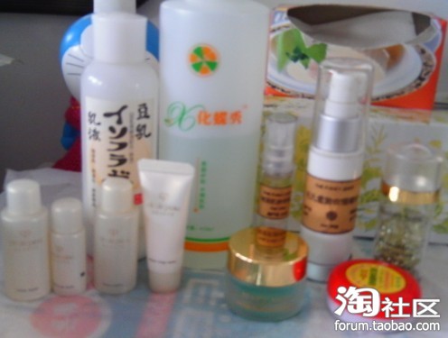 那个化蝶秀的水用的比较多.拿来泡摸.....因为便宜....怎么用都觉得不心痛- -.