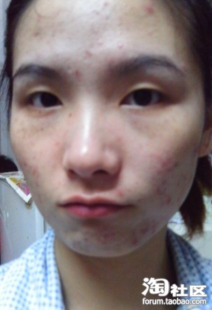..恐怖的来了..第二天起来..整个脸都红了,被挤过的地方时红的...吓死- -...哎..无奈下.我只有去了皮肤医院(也不说具体名字了)医生看了看说是痤疮..给我开了2个摸得,1个水.一个洗脸的.还有3、4合药.忘记叫啥了....最后给我说不能晒太阳,用他的药不能用护肤品...回家我就迫不及待的开始使用...就这样一个礼拜过去了..脸开始严重脱皮..皮肤也干燥的感觉要裂开了..脸很痛......这个时候我药也没了..第二次去那个医院...开的药于上次开的大同小异.摸得变成3个- -..洗脸的变了个(不过我看到.好像每个人都有这样.最搞笑的是别人用来洗澡.我来洗脸.)