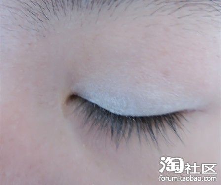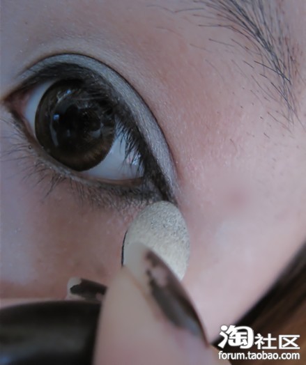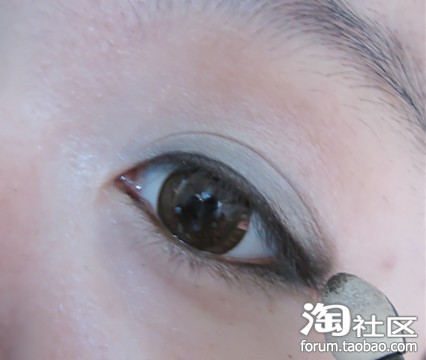然后就是重要的眼妆部分了,首先用白色带亮珠的眼影打底,可以用手指涂抹,这样更加均匀