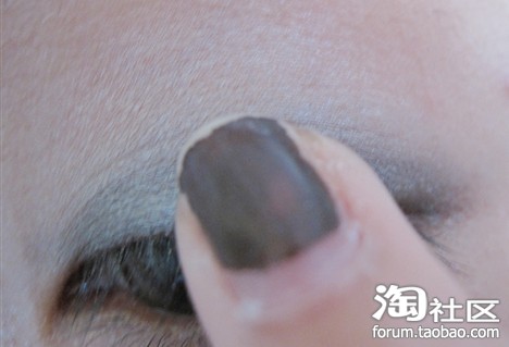 用灰色的眼影涂在靠近根部的位置,然后慢慢的往上晕开。