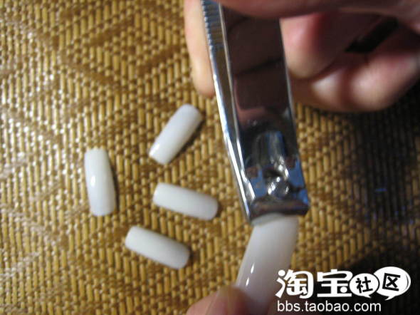 把甲片磨自己想要的长度,在用牙签把甲片粘在上面!