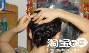6.两侧的发辫的中间下一颗夹子固定,这样造型比较不容易乱。 (注:下夹子要将夹子隐藏起来,这样很漂亮很多。)