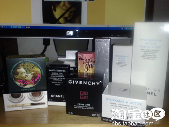 一直很想拥有这个,去HK终于见到专柜,立刻狂奔去,这个还说是限量版的,两盒+眼线笔只要370,今天用了一下,真的很好,推荐!