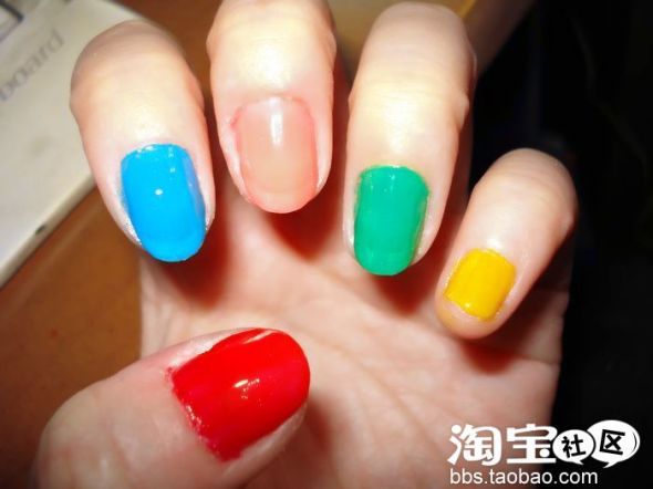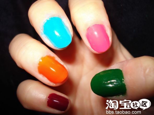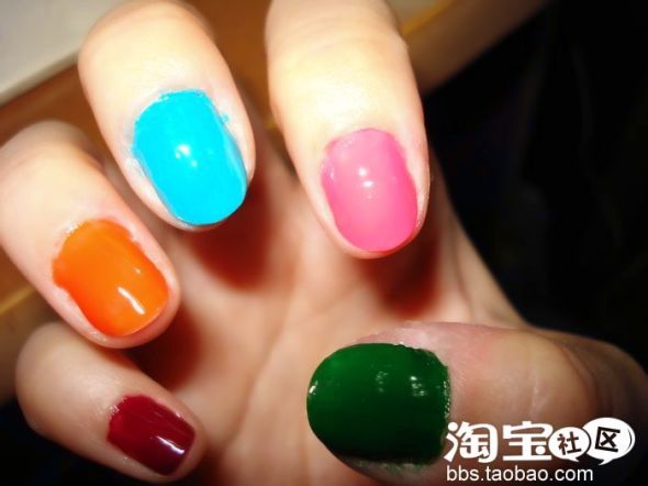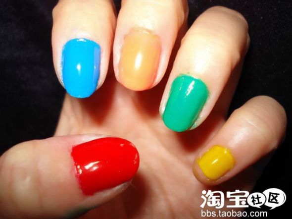 每个指甲上涂上一种颜色指甲油
