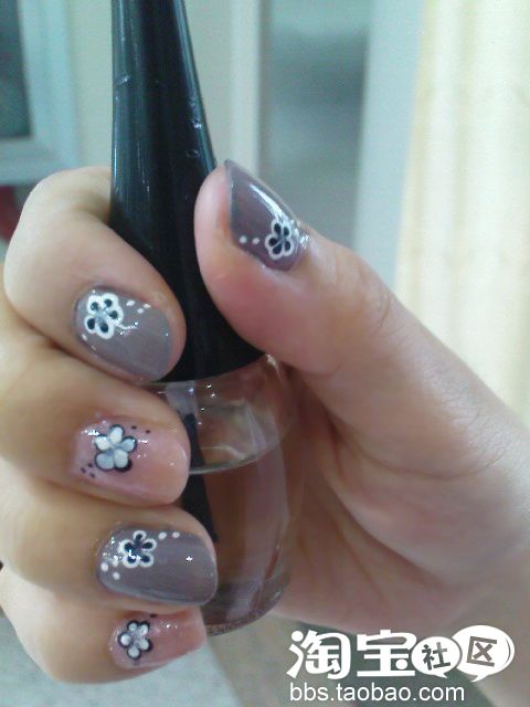 下面是海海帮一个小美女同事做的清雅风格小花美甲,和海海这个一个系列的,只是配色变成优雅气质灰+淡雅粉色,是不是有另外一番风味呢?