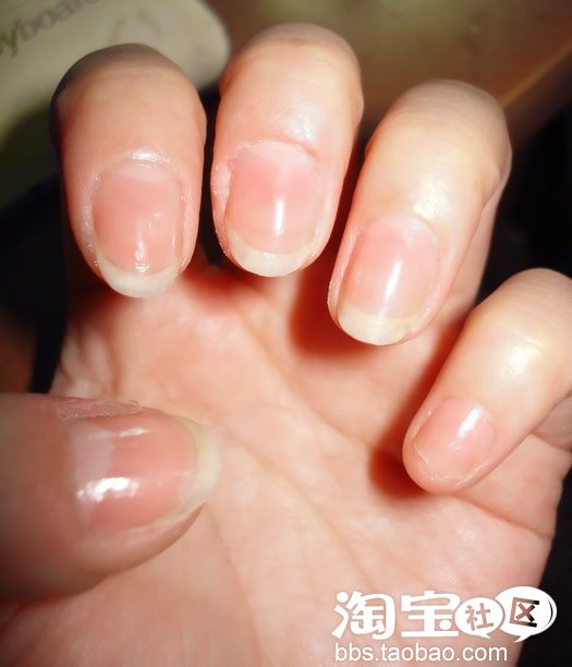 先把自己的指甲打磨好形状,然后涂上底油