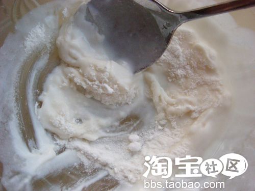 放入适量面粉(慢慢放哦,面粉主要是调节面膜的粘稠度)