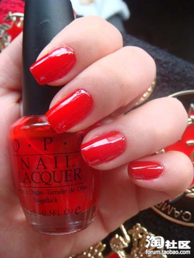 哈哈 大功告成 有点小美艳的说 OPI大红是绣绣最爱的颜色啦 这个是涂好后在光线充足的地方拍的哦 没有做任何PS效果 OPI就是这么闪闪惹人爱的!!