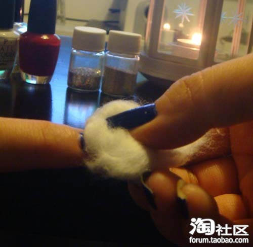 首先用棉球蘸了卸甲油按住指甲几秒钟后再抹掉 这样很容易就能以掉抹干净 即便是深色的指甲油液容易卸掉 这样也不容易把手弄脏
