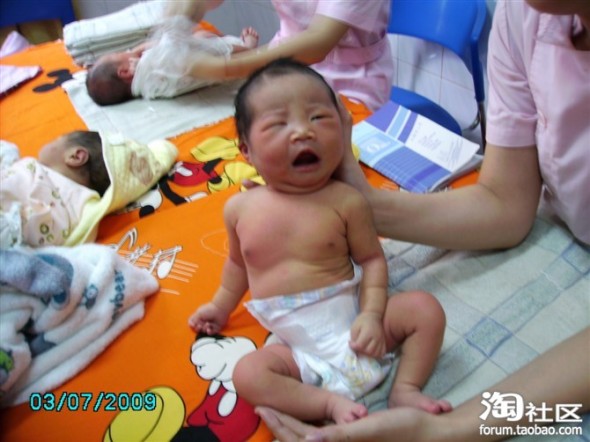 6月29日晚上,像往常一样9点睡了,10点的时候,肚子有点痛,一会小便多,一会又想大便,一直折腾到半夜2点。也不知道这是就要生的预兆,就在那稀里糊涂的一直跑厕所,肚子是一阵比一阵痛。到临晨3点的时候,我爬起来上了个网,查查自己这到底是怎么回事。一查,妈呀!!我这是要生了啊~~又不想半夜打扰我婆婆,赶紧自己准备要生的东西,什么宝宝的衣服啦,自己要换洗的衣服啦~现在想想我当时真傻,都快痛死了,还不忘体贴别人!!临晨5点的时候,我叫醒了我婆婆,她马上叫车带我去医院,并叫来了我的爸爸妈妈。到了妇保医院后,医生还没来,就这样一直等到8点多钟。因为我要剖腹的,我又忍着剧痛做了一系列检查,什么B超啦,验血啦。。一直折腾到10点多,医生来了,对我说:我们这里床位都已经安排好了,你的话只能等到下午剖了,要么你自己生。苍天啊~大地啊~~我都已经痛了这么久了,我还能等到下午么???硬着头皮被推进了产房,映入眼帘的是一个正在生的女人在那大喊大叫,吓得我赶紧对医生说,我要等!我要等到下午剖!!我不要生!!!医生把我骂的狗血淋头。继续等待中。。。。终于下午1点半的时候,(这期间我是痛的死去活来,活了又死~~无法言语!!)医生对我说,你可以接生了,开始用力!!!