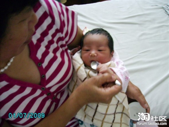 出生第二天就知道抢着吃东西了,宝宝你以后肯定不得了的猛啊~~