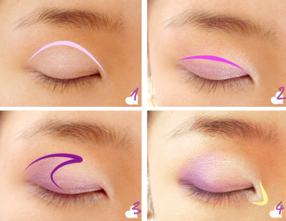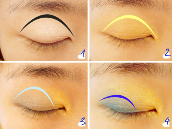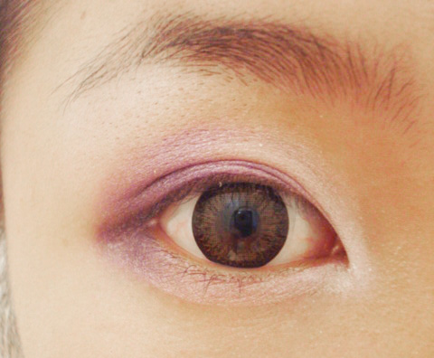2.用2色涂抹双眼皮褶皱区,并与1色均匀晕染过渡