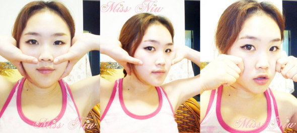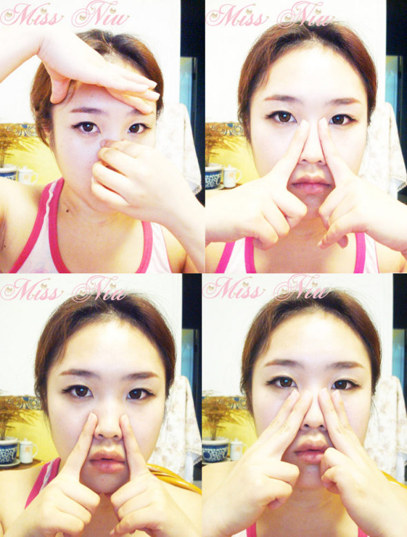 再由鼻翼两侧沿鼻梁向上至眉心,沿着眼眶向外,