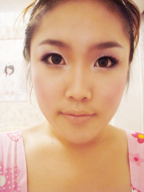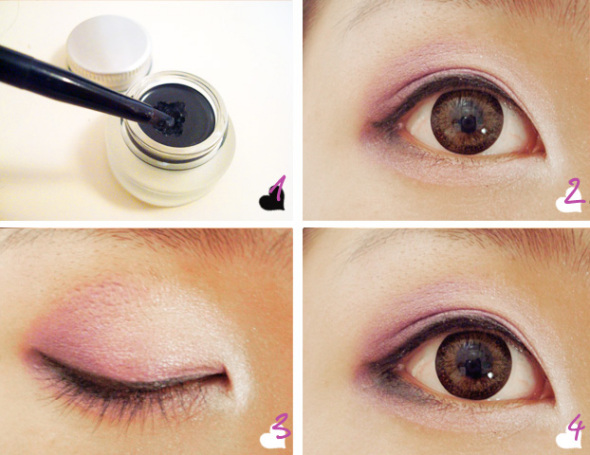 3.闭眼在眼线边缘再描绘一层,使妆容整洁