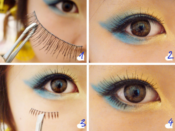 Z字型涂抹睫毛膏,使上睫毛和假睫毛粘合