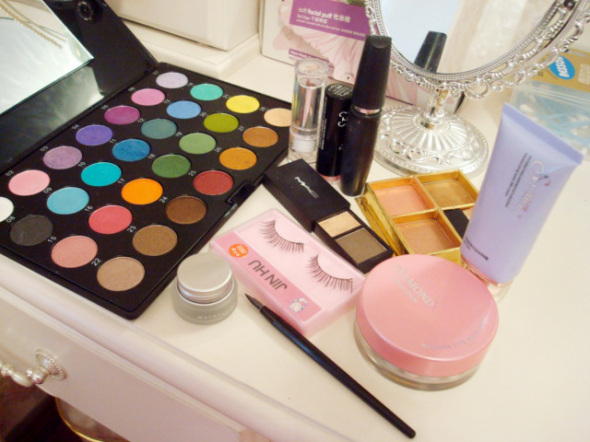 假睫毛涂胶水后用嘴巴吹吹,待干一会后再贴,会比较牢固