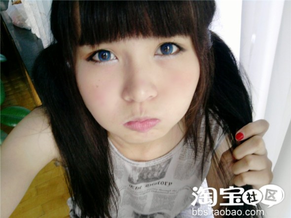然后把隐形眼镜带上。。 贴上双眼皮贴,,