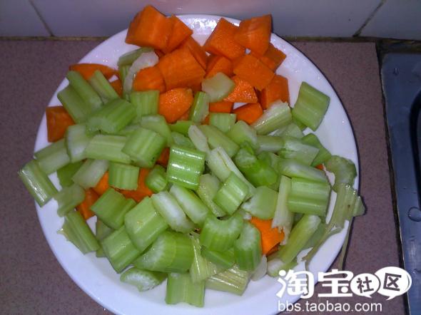 先把胡萝卜芹菜放入沸水中煮个5-8分钟