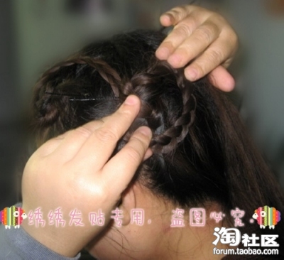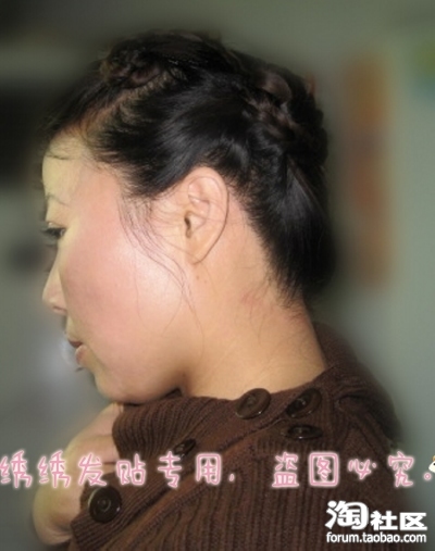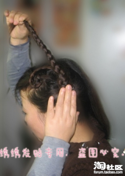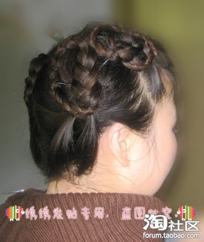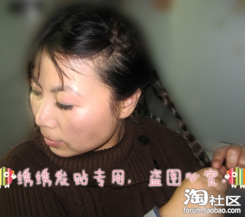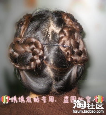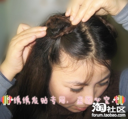 一边完成了,开始另一边。(我这个辫子起的有点高了,mm们编的时候再低一些为好)
