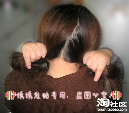 将头发左右分成两束,因为真发是要藏起来的,随意分就好。
