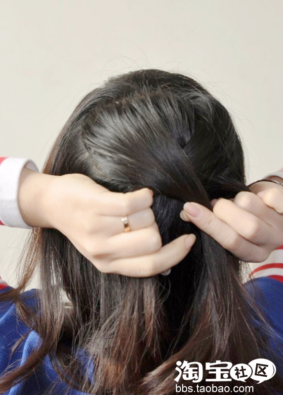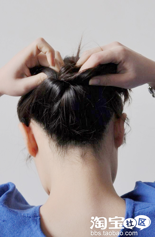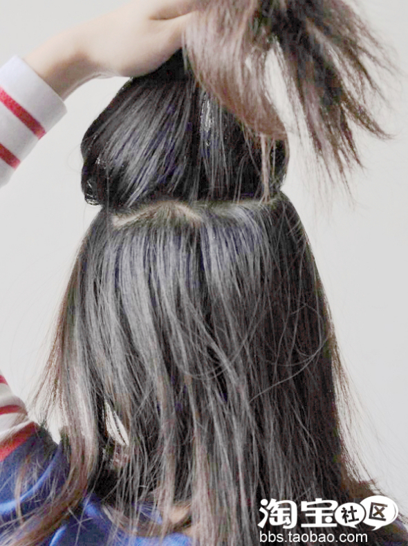 然后重点就是呢。在发圈上方的头发那挖个洞。哈哈貌似这么说也可以吧