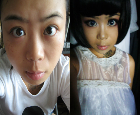因为芭比妆最后是要戴睫毛的,所以睫毛是一定要夹的不能偷懒。