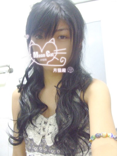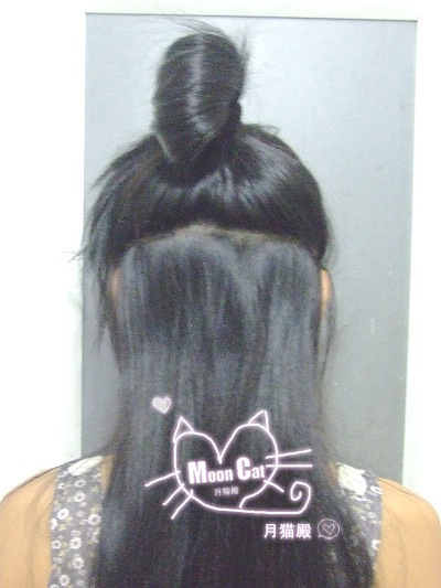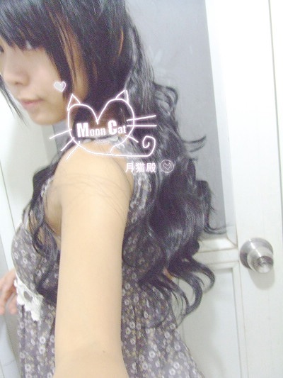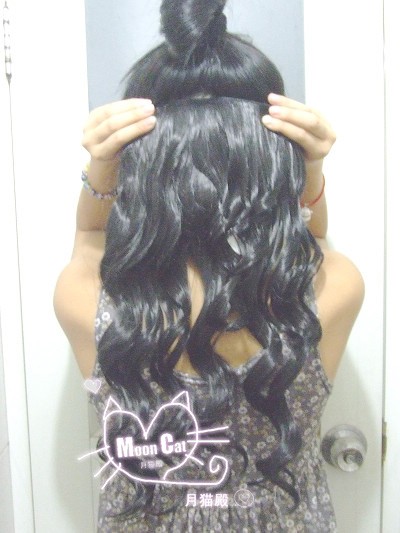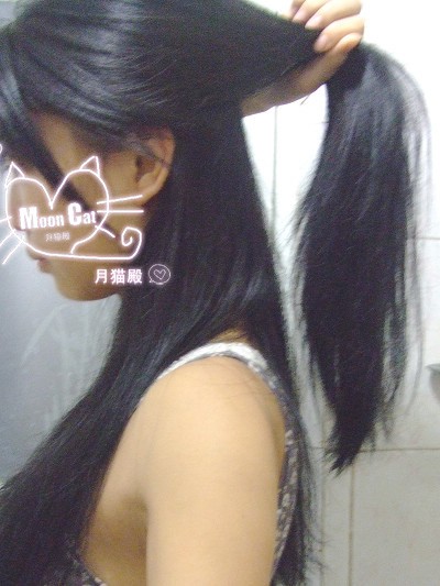 然后就那么一整块卡在刚才那发际的地方,扣上夹子就完了。【不知为啥假发在日光灯+卡片机的配合下那么反光,真实看起来完全跟真发光泽差不多】
