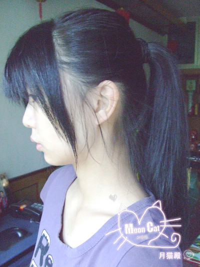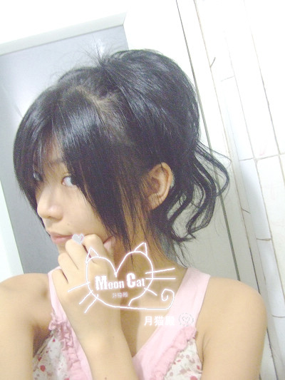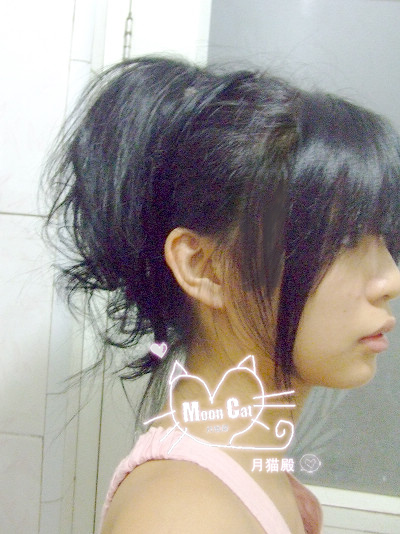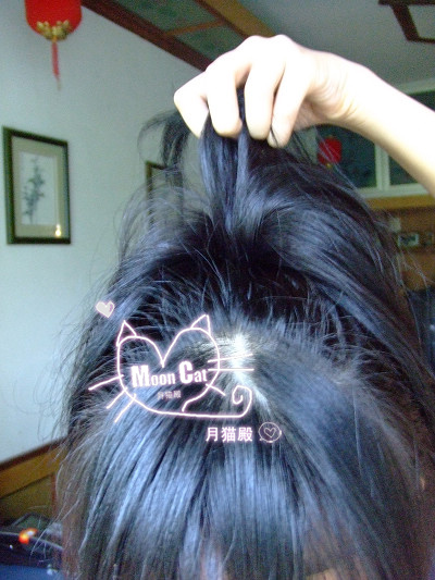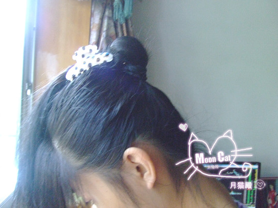 1.本教程适合中长发和长发的MM~~看下月猫的原始发型...