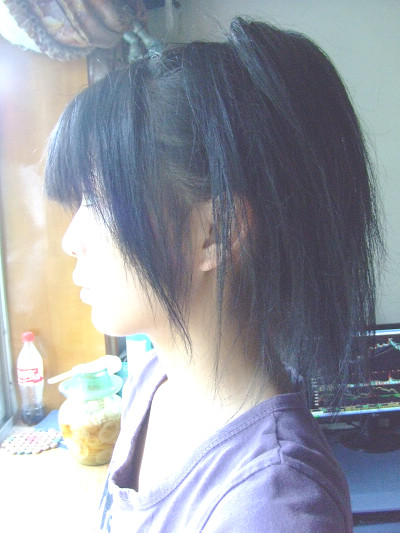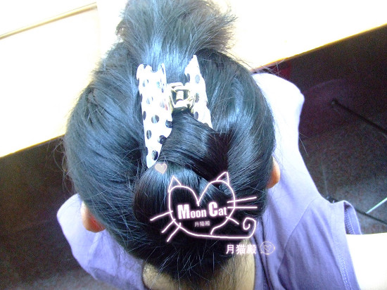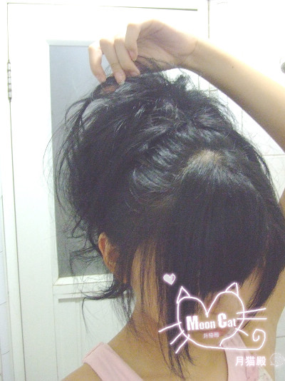 就成这个样子了~~还没完,这样是不能出门的,远看跟短发似的,后面还能露出那鲨鱼夹象大妈样。