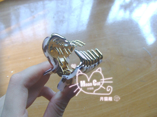 3.鲨鱼夹一枚~~最好别跟我一样用彩色的,最好用跟自己头发一个颜色的。像我照片里那样,把马尾扣到头顶,固定住。